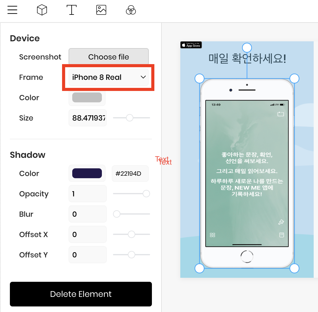 기기 스크린샷이 포함된 이미지를 사이즈에 맞게 만드는 게 포인트.