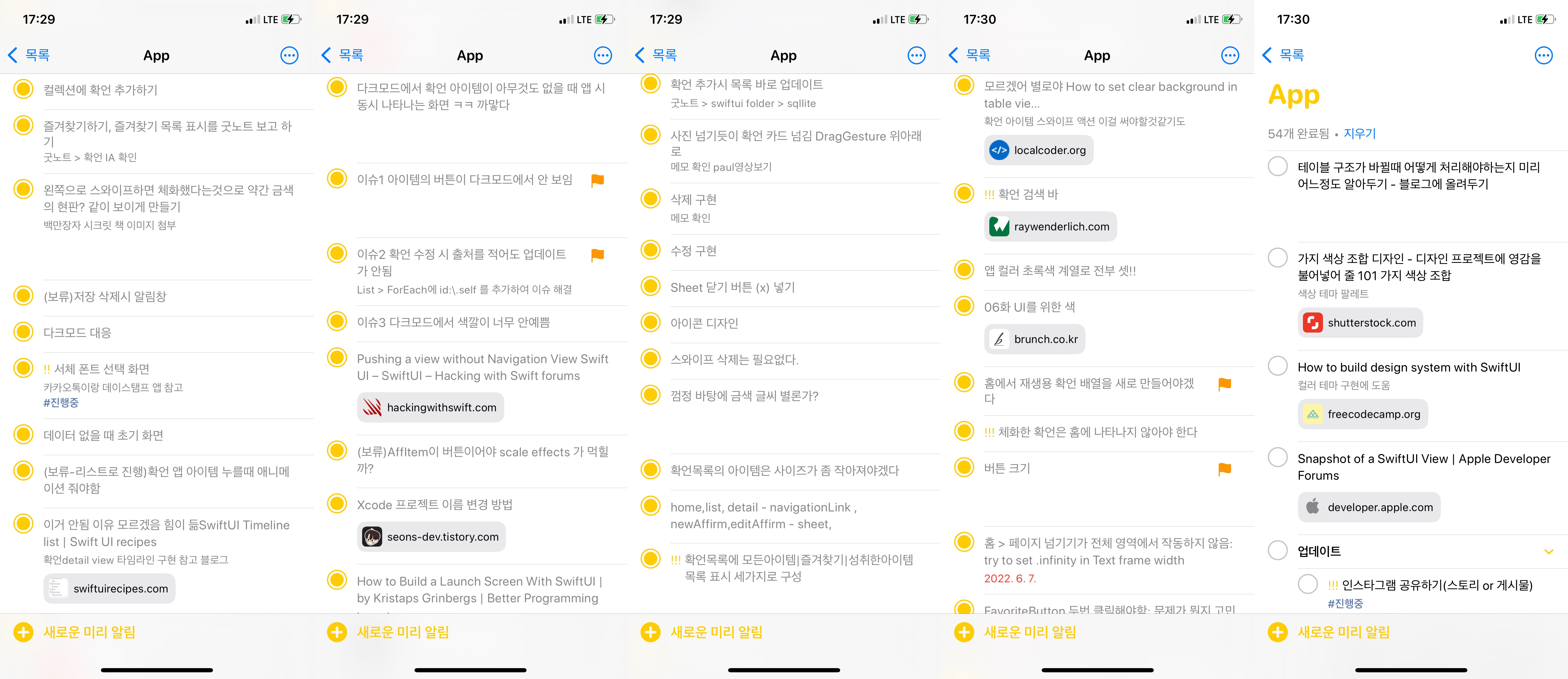 기능 하나하나 구현할 때마다 정말 할 일이 많았다. 데이터의 흐름도 생각해야 하고 UI도 생각해야 하고.. 코딩을 시작하면 이제 올바르지 않은 내 코드와 씨름한다. 아래는 씨름의 흔적.. 애플의 기본 앱인 미리알림 앱을 애용한다.