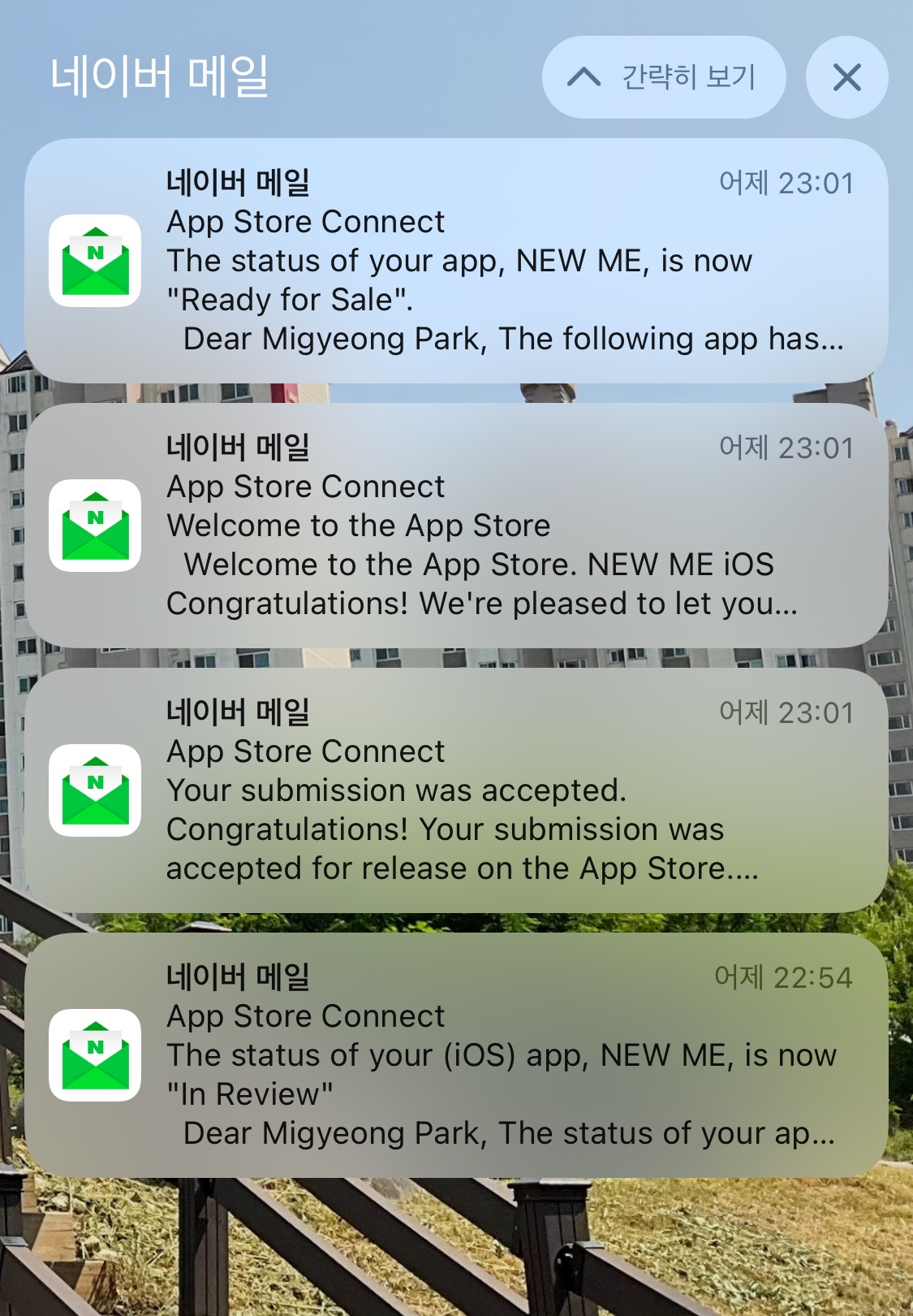 App Store Connect 로부터 받은 메일 내 앱을 만들며 느낀 점