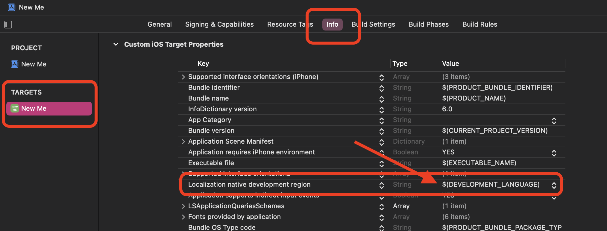 Targets > Info > Localization native development region 에 보면 $(DEVELOPMENT_LANGUAGE) 라고 돼있습니다. 영어죠. Hmm, 그런데 아이폰 언어를 프랑스어로 바꿔도 개발 언어인 English로 안 바뀌고 한국어로 있습니다. 왜일까요? 제가 출시한 앱이 기본적으로 한국어로 세팅되어 있는 걸까요?