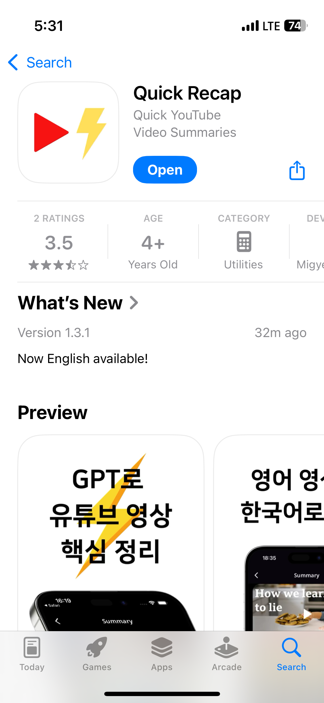 - Language Support: Summaries are available in both English and Korean, making it versatile for various content.