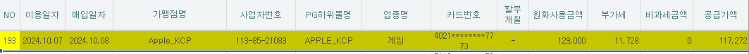 애플 개발자 계정 경비 처리(신용카드 매입명세)